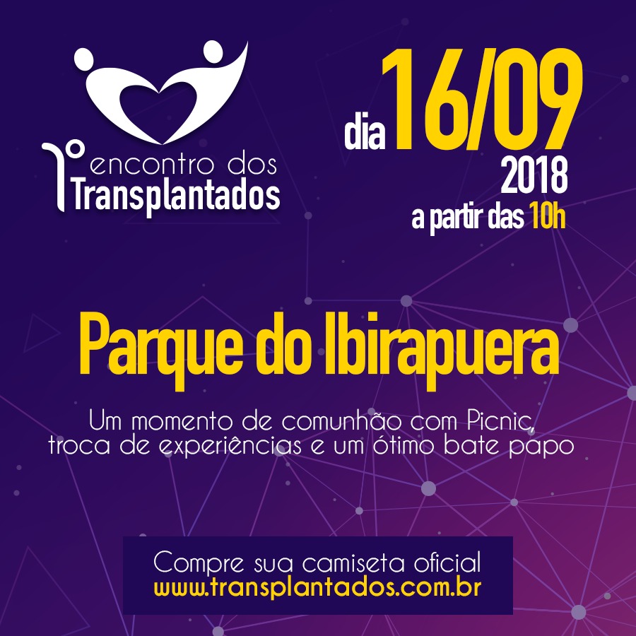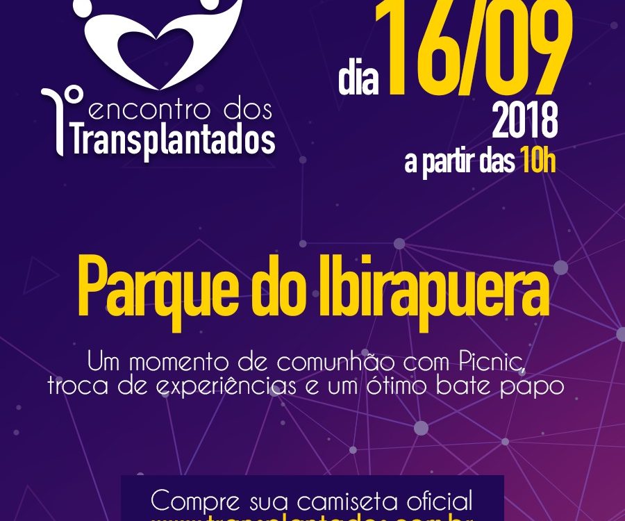 1°Encontro de Transplantados Dia 16 Setembro Domingo A partir das 10h Local:Parque do Ibirapuera São Paulo Ponto de encontro Portão 3 Vamos ter um dia no